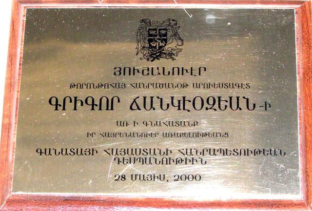 In 2006, in appreciation of his long and successful career and his generosity of giving numerous benefit concerts, Krikor Jangeozian was awarded with two prestigeous gold medals: